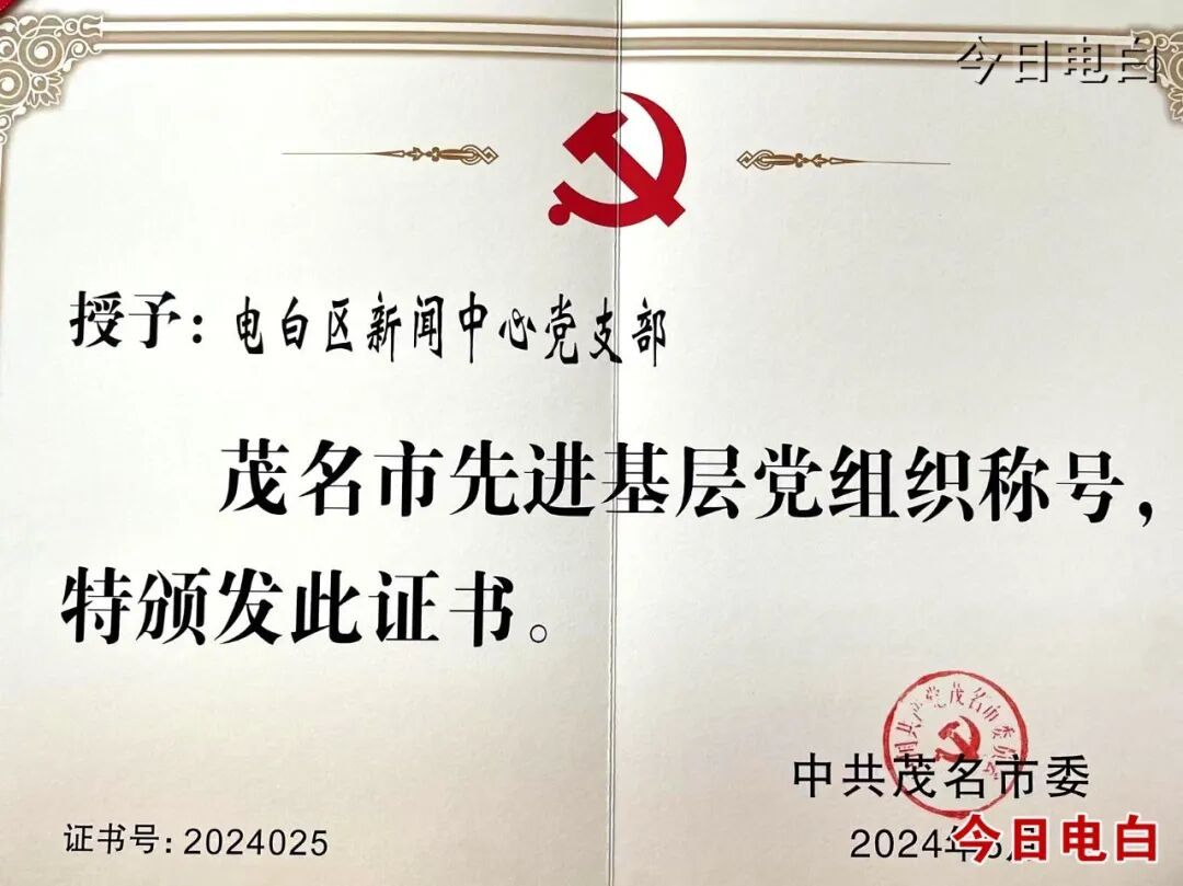 近年来,电白区新闻中心的工作得到了各级认可:党支部获评“茂名市先进基层党组织”,中心先后荣获“电白区先进集体”“电白区作风建设先进单位”“电白区精神文明建设先进单位”等称号,连续多年在区直单位党建考核、绩效考核中获一等奖,多次斩获综治信访维稳相关专项奖项。